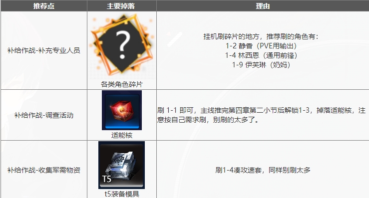 中期有一定练度后可以刷下面两个图(根据外服玩家推荐)