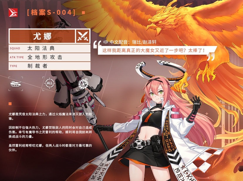 1.尤娜会与召唤的火鸟一起进行普通攻击,并且火鸟每攻击5次会对最远距离敌方造成一次范围伤害,使目标5秒内降低30%的攻速和攻击力。