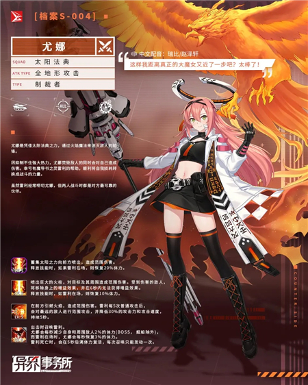 《异界事务所》游戏中太阳法典尤娜是尤娜的觉醒版本,很多玩家不知道要不要抽,那么今天小编就给大家介绍一下异界事务所太阳法典尤娜强度分析,有需要的小伙伴不要错过了。