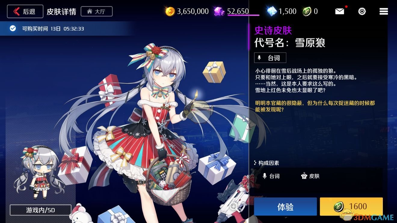 全新圣诞限定,主题时装限时开放!【周时云-钟塔的守卫】,【徐芸-下雪天的回忆】,【希尔薇娅-宴会场的间谍】,【芽-代号名:雪原狼】,圣诞时装将于本次更新维护后至2022/1/12 23:59进驻商店时装的主题限时橱窗,老板,已经为你斟好了平安夜的红酒,来与他们进行亲密的交谈吧。