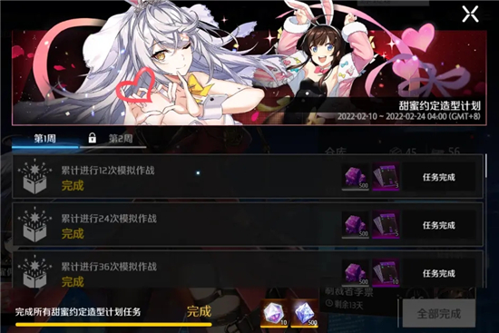 小提示:情人节任务将分两周进行,下周(2022/2/17)更新维护后开放第二周的任务。