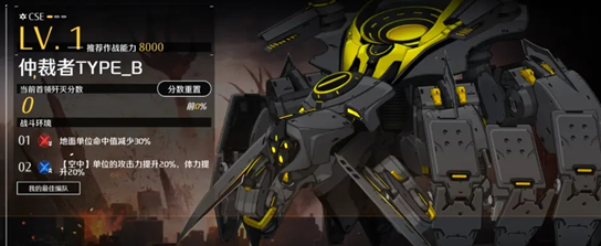 BOSS“仲裁者TYPE_B”的战役中,我方空中单位的攻击力提升20%,体力提升20%。