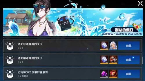 新活动剧情“副总的假日”将在2022年6月2日更新维护后开放,活动专属的任务以及商店(第一期)也将同步开放!