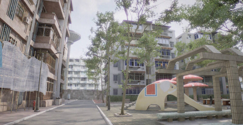 出门到户外,往蓝色球的方向走,凉亭里可以拿到胶片——暖阳。