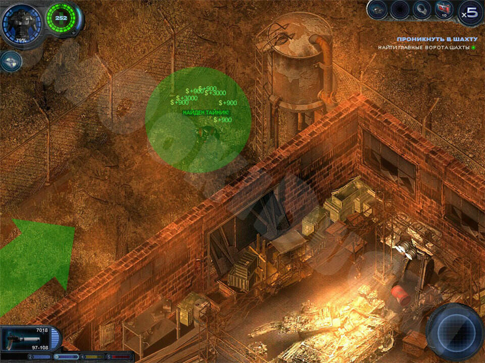 左边是一个车库,里面停着一辆坦克等着我们,在车库的外面有本关的第一处隐藏地点,有着大量的金钱资源。