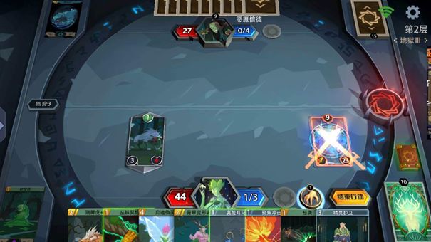 没有找到软泥怪之前我们前期主要召唤3费生物并直接使用主动技能将它变成4费生物,然后在第二回合直接使用启迪仙灵将4费生物变成6费生物,来取得场面优势。