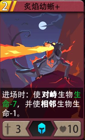 和蜘蛛一样是优秀的低费生物,费用更低,地狱难度第一回合放下去直接可以秒一个1费怪,可触发炽炎幼龙。