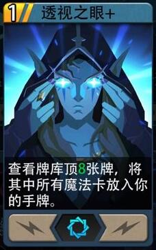 透视之眼升级之后可以拿牌顶最多八张魔法卡,腐泉是一个卡组魔法卡极多的英雄,就能最大程度的发挥透视眼的效果。