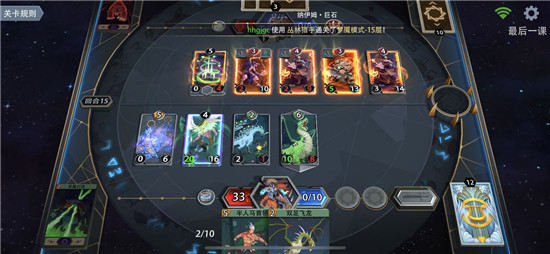 第1关,开局上个1费的在图腾对峙位,这样可以保证每个图腾最多输出一次就被我们摧毁。中期上6费老树,帮忙回血站场