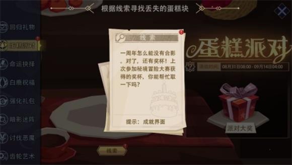 获取方式:游戏主界面点击成就-点击左下角成就奖杯,蛋糕会出现在奖杯上方,具体如下图。
