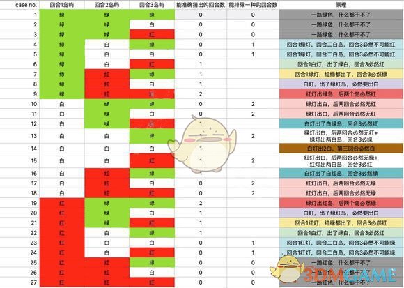 在没有岛屿提前或者推后的情况下从图中可以得知只有6中我们需要打混子牌或者杜明,剩下将近80%的情况我们只要掌握技巧至少能排除一种岛屿,而且在这三分之二的情况下我们可以确定岛屿的颜色。