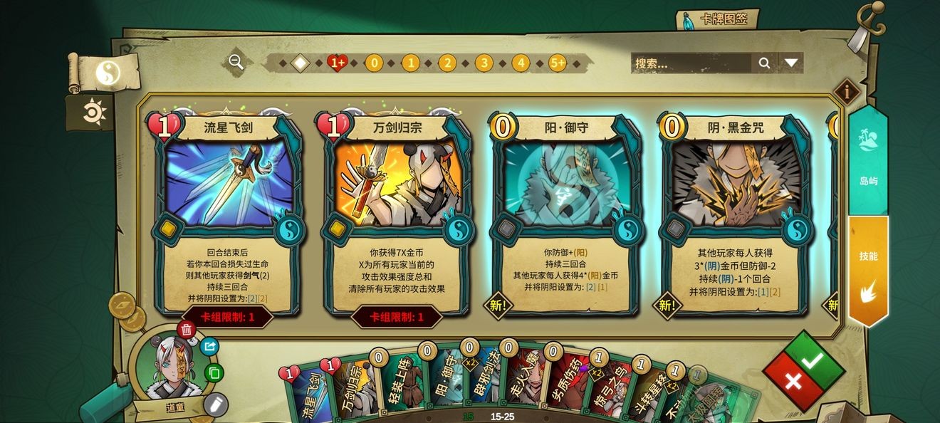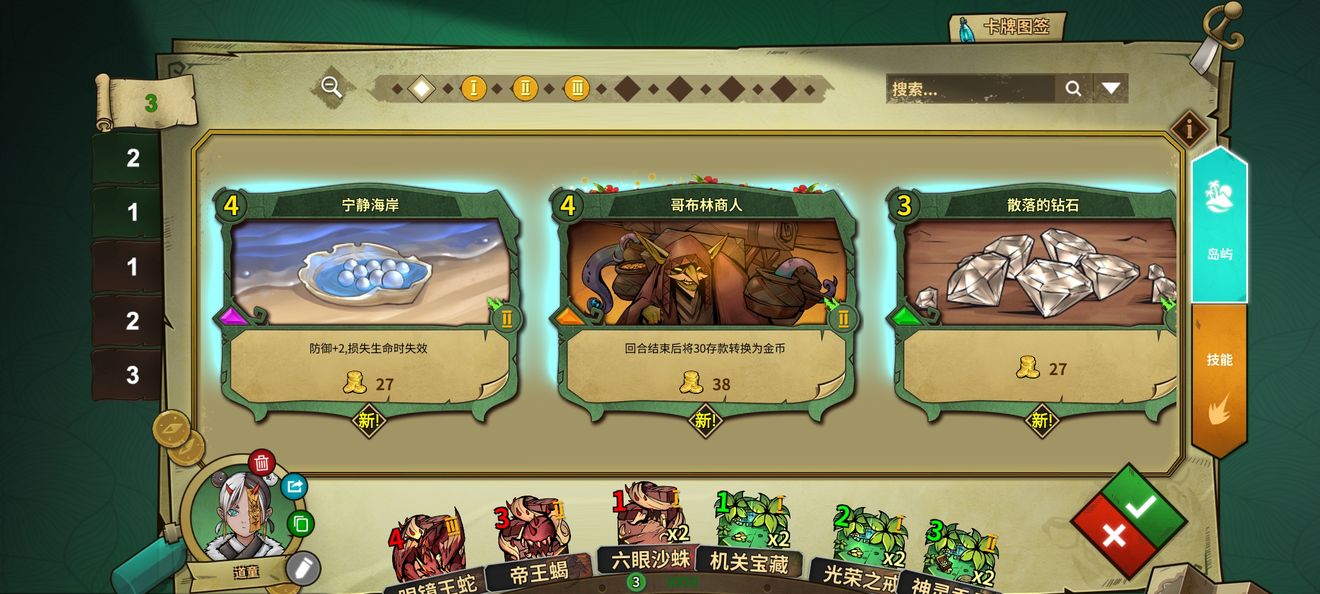 2、这套牌几乎全靠中场休息回血,所以比较怕打二以上的黑岛,这也是神灵贡品必带2的原因。