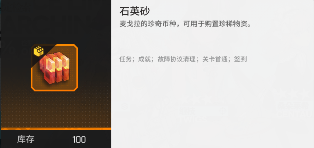 石英砂能够通过任务、成就、故障协议清理、关卡首通、签到等在游戏内的形式获得