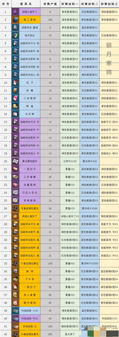 《少前:云图计划》加工厂配方大全