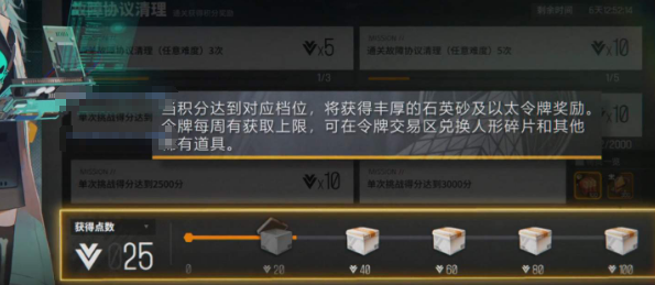 2、通关副本可以获得积分奖励,积分达到一定档位即可解锁奖励以及令牌。消耗令牌可以兑换人形碎片以及其他稀有道具。