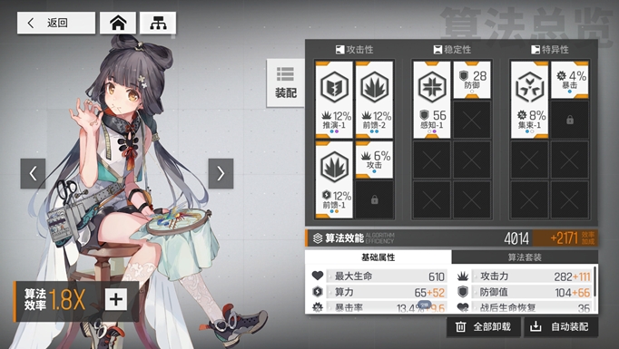 效果也很直接,将你所有算法的主词条属性乘你的算法效率得出实际增幅。值得一提的是,副词条和套装属性不享受效率加成。