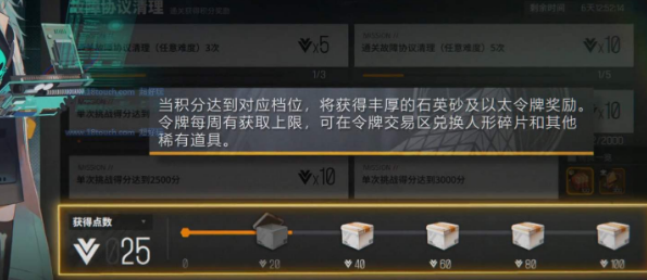 2、通关副本可以获得积分奖励,积分达到一定档位即可解锁奖励以及令牌。消耗令牌可以兑换人形碎片以及其他稀有道具。