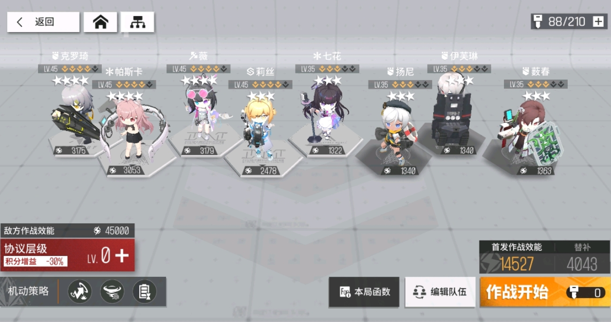 帕斯卡,克爹必须四星,技能五级以上。其他角色每有一个50级5技能都可以轻松的多(除去本图中助战位置),c位我选择的是:薇