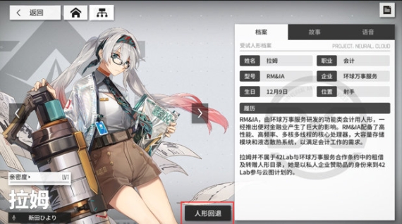 通过人形资料界面进入,选择对应人形。点击界面右上角「人形档案」按钮,选择「人形回退」(如下图)