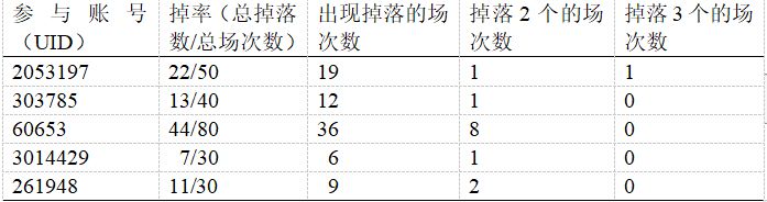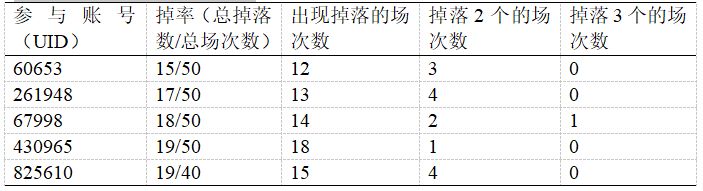 总计复数掉落率(掉落复数个的场次数/总出现掉落的场数):