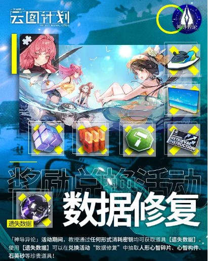 此外,活动期间教授通过任何形式消耗密钥均可获取道具【遗失数据】。使用【遗失数据】可以在兑换活动“数据修复”中抽取人形心智碎片、心智构件、石英砂等珍贵道具!