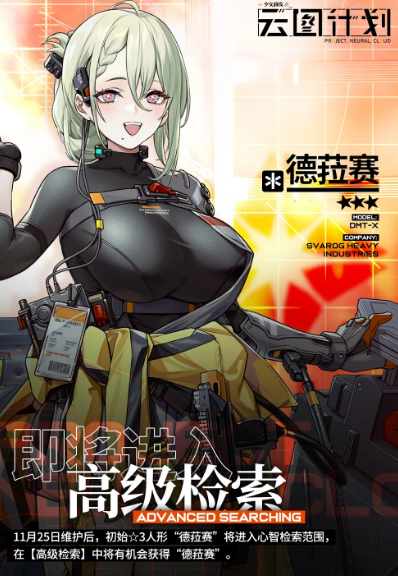 亲爱的教授,11月25日维护后,初始⭐3人形“德菈赛”将进入心智检索范围,在【高级检索】中将有机会获得“德菈赛”。