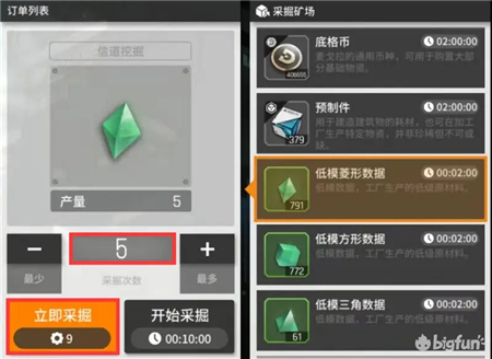 2、在采掘矿场消耗9产能加速生产5个低模数据。