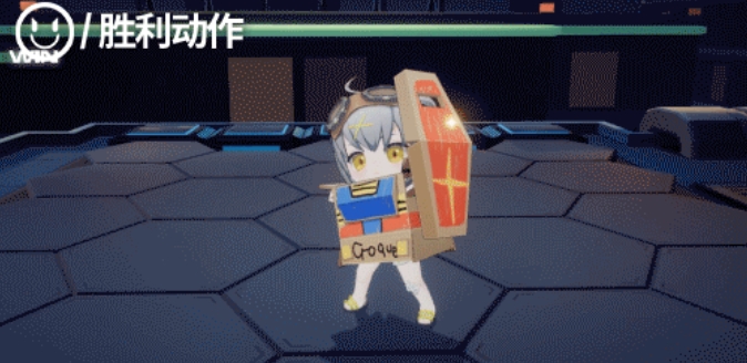 胜利动作也充满童趣,把纸箱变作盔甲,小克罗琦脑袋从纸箱上的洞口冒出来,然后伸出手脚,举起纸板盾牌,今天也有好好努力呢~