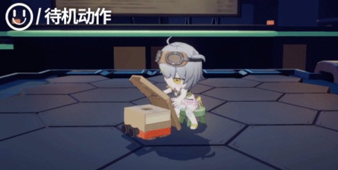 待机动作中,小克罗琦掏出纸板做的盾牌,用画笔在上面描绘想要的图案,起初还乖巧的坐在凳子上,随后就把凳子踢到一边趴在地上画画。