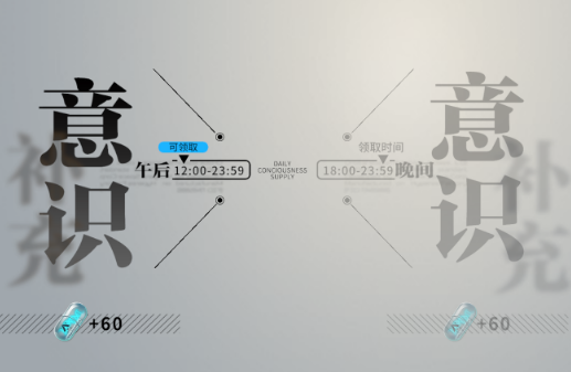 意识:即是绝大多数游戏中的体力,也是当下最重要的资源,每天中午和傍晚都可以领取60点,考虑到每个小伙伴的需求不同,所以领取的时间官方大大还是设置的很充裕的,不像有的游戏只能在当天某个特点的时间内才可以领取,但是一定要记得当天领取哦!