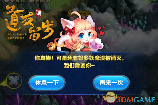 一场战斗结束后,你可以选择再来一次或者休息一下。除魔卫道是件任重道远的事,不是一朝一夕就能解决问题,你想要接着打,也得注意看自己的显妖符和除魔令是否足够,懂得休养生息,才能够在这条道路上走得更远。