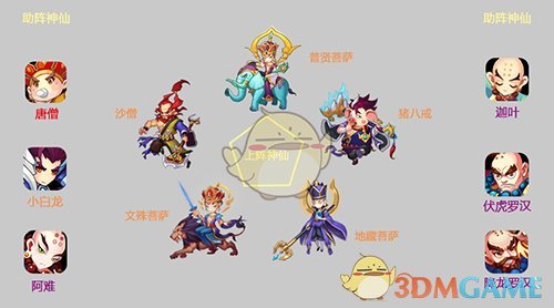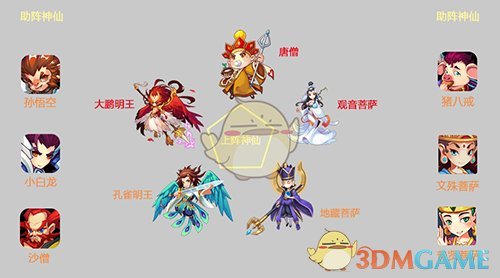 布阵:主角+(八戒、普贤菩萨、文殊菩萨、沙僧、地藏菩萨)