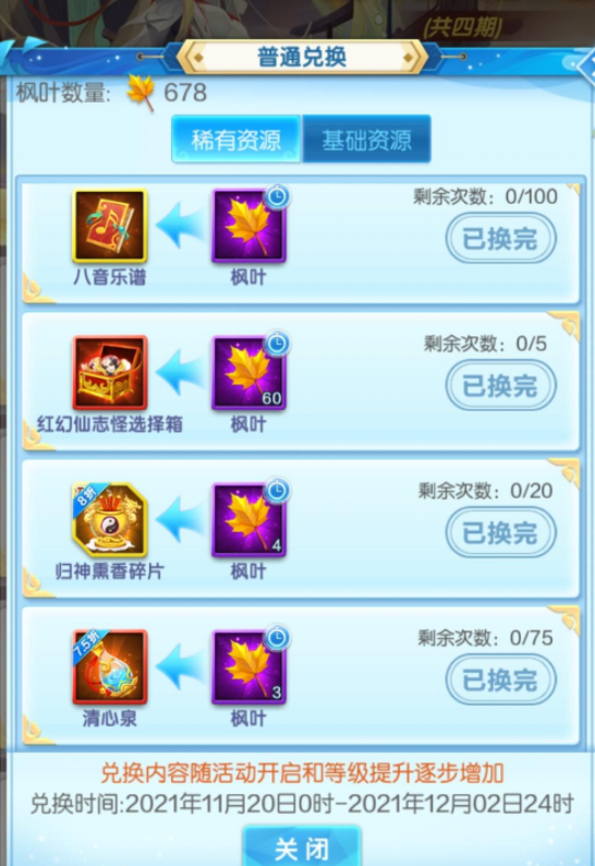 新区这里,如图这些的优先级很高,如果是中途接的新区,转生符,归神香,红色幻仙志怪,低于当前版本一级的道具,这些先换了。仙器,我自己个人感觉下来每天至少出一个红色的,红色志怪你不能保证每天都有红,所以我这里建议换红色志怪,金色的志怪还用说嘛,肯定换啊。