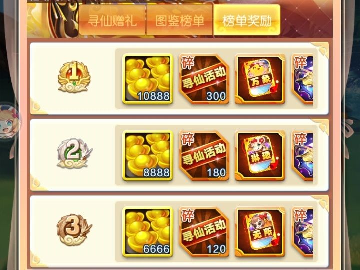 这寻仙榜奖励也一般,现在抽的越多,出了新手10天后越难玩,10天内至少要存28w以上元宝,才能保证出了新手村后玩得舒服,出村后的活动能用元宝直接买到最高品质的紫虚神仙。(28w挺容易的,我玩过的几个新号出村后都有30w多点元宝)