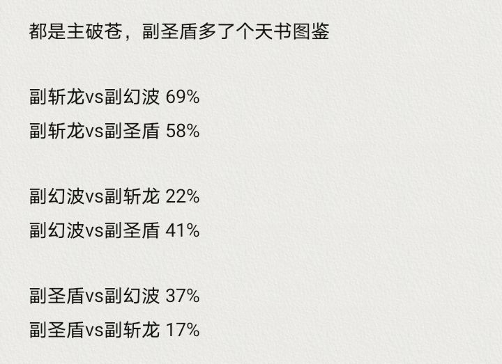 将来的四本书阶段,1456是比1356强的,已有多本核心书的情况下,斩龙会不如幻波。开斩龙的两本书三本书阶段已经比幻波强了,四本书阶段总得让开幻波的翻一下身。至于后面的五本书阶段,开斩龙开幻波的已经没区别了,都是13456。