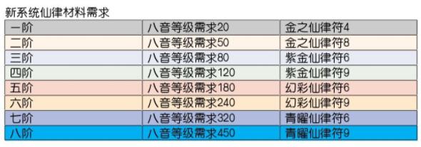 新系统仙律材料需求