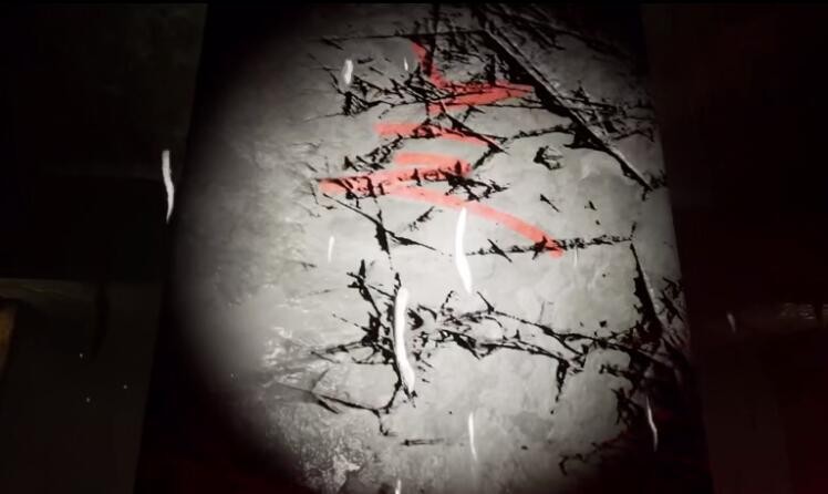 兰:柱子上用红色油漆画出一个兰字。如下图