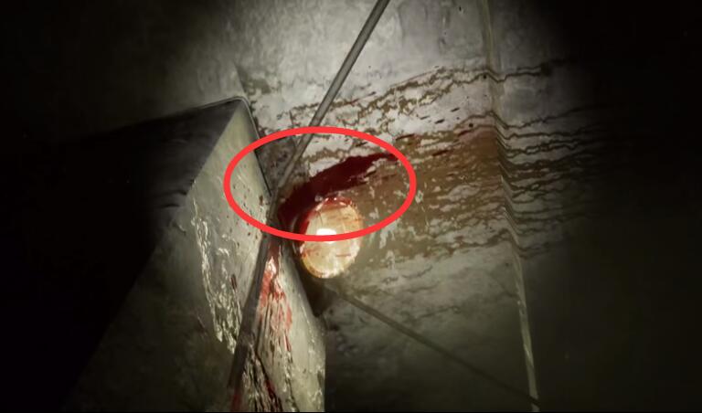 这盏灯周围有明显的的红色液体,闻上去一股血腥味,像是从房顶渗出来的。