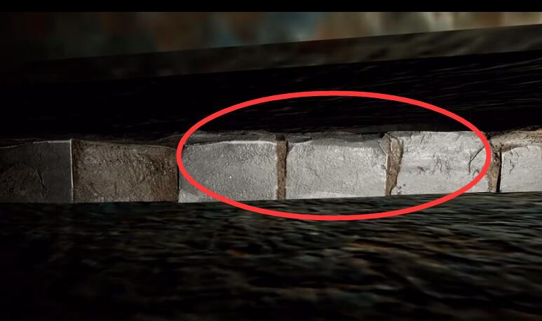 墙上的裂缝里有一块不同形制的石头,看上去是某种遗迹的残片。。