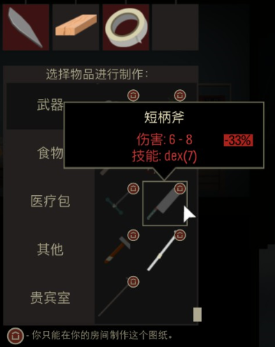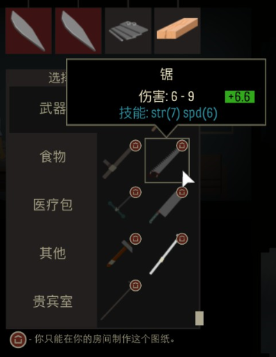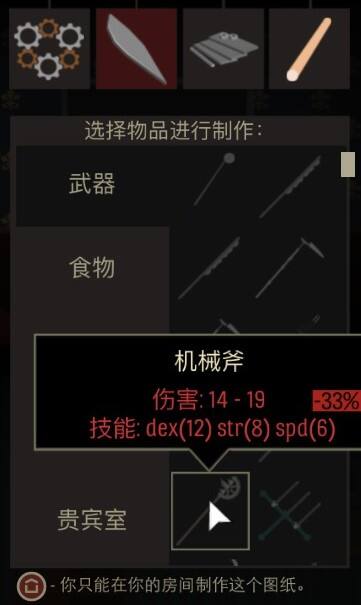 3~4级使用捡到或合成的锯或短柄斧,材料不足也可以使用员工。3级加2点力量、2点敏捷。4级加4点力量。锯和短柄斧都是用来合成剑锯的材料。