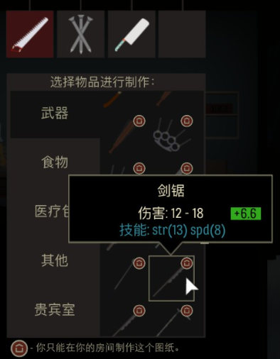 次选路线2:厨刀/匕首→短柄斧/锯/员工→剑锯→长刀→链锯剑