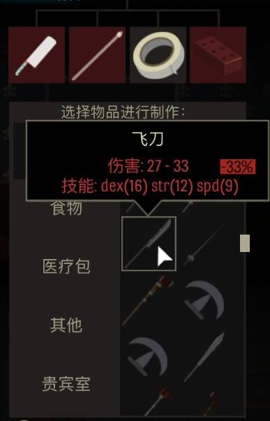 1~2级使用随机捡到的厨刀或者匕首。2级加4点速度,对厨刀和匕首的伤害有很大提升。