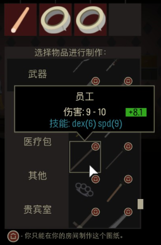 3~5级使用捡到或合成的员工。3级加3点力量、1点敏捷。4级加4点敏捷。5级加4点敏捷。简单模式在拥有员工后就可以应对重击者及以下的怪物了。因为员工要用来合成飞刀,所以用完以后不要分解。