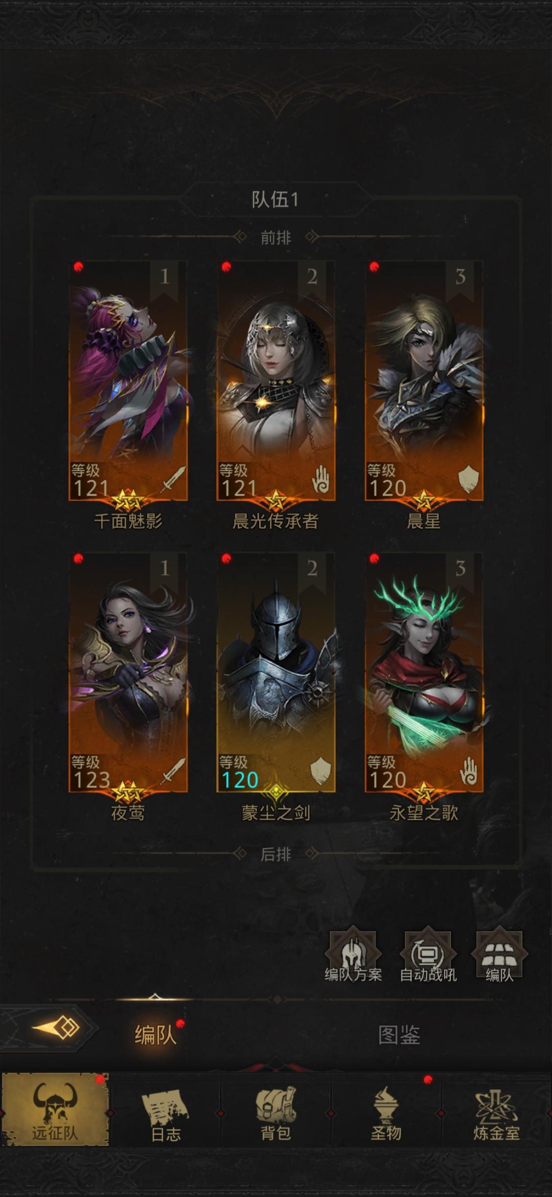 桥那里的天陨恶魔可以用:蒙尘之剑+暗语使徒一直上致盲,带个法系输出能快一点破魔盾(暗语使徒,小技能打没魔盾的目标也能加致盲)再带个奶,没有永望,用星辰也行,剩下的就带自己的主要输出战吼给输出就行。