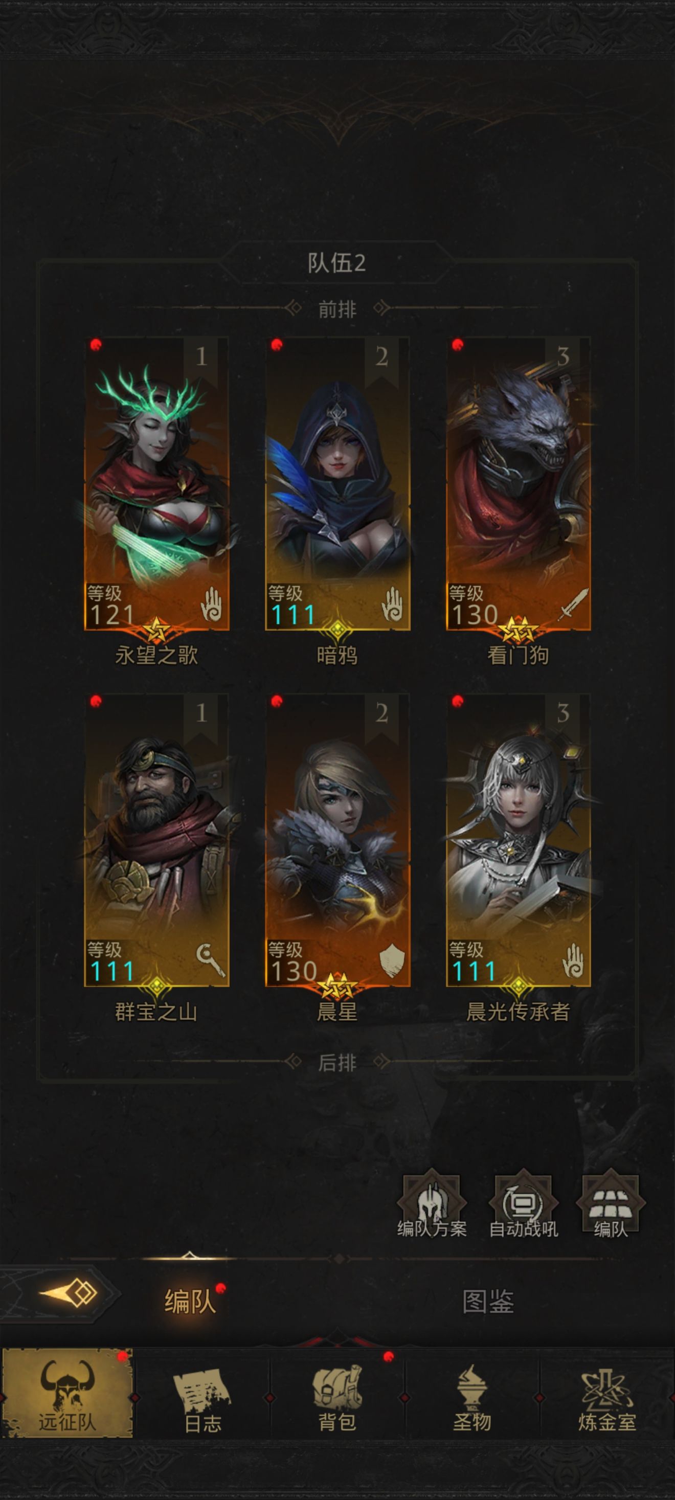 阵容核心为两个奶妈以及晨光和暗鸦,剩余两个爱上啥上啥。