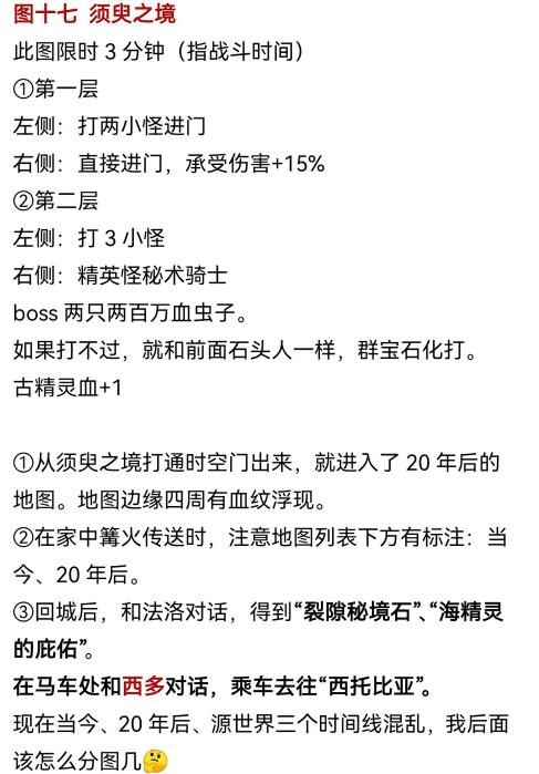 2、然后回到世界树根部,通过时空门,进入图十七须臾之境,此图限时三分钟(指战斗时间)