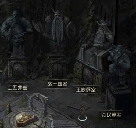3、我们通过查看【石碑】发现我们需要打的关卡顺序为【众民葬室、工匠葬室、兵士葬室、王族葬室】