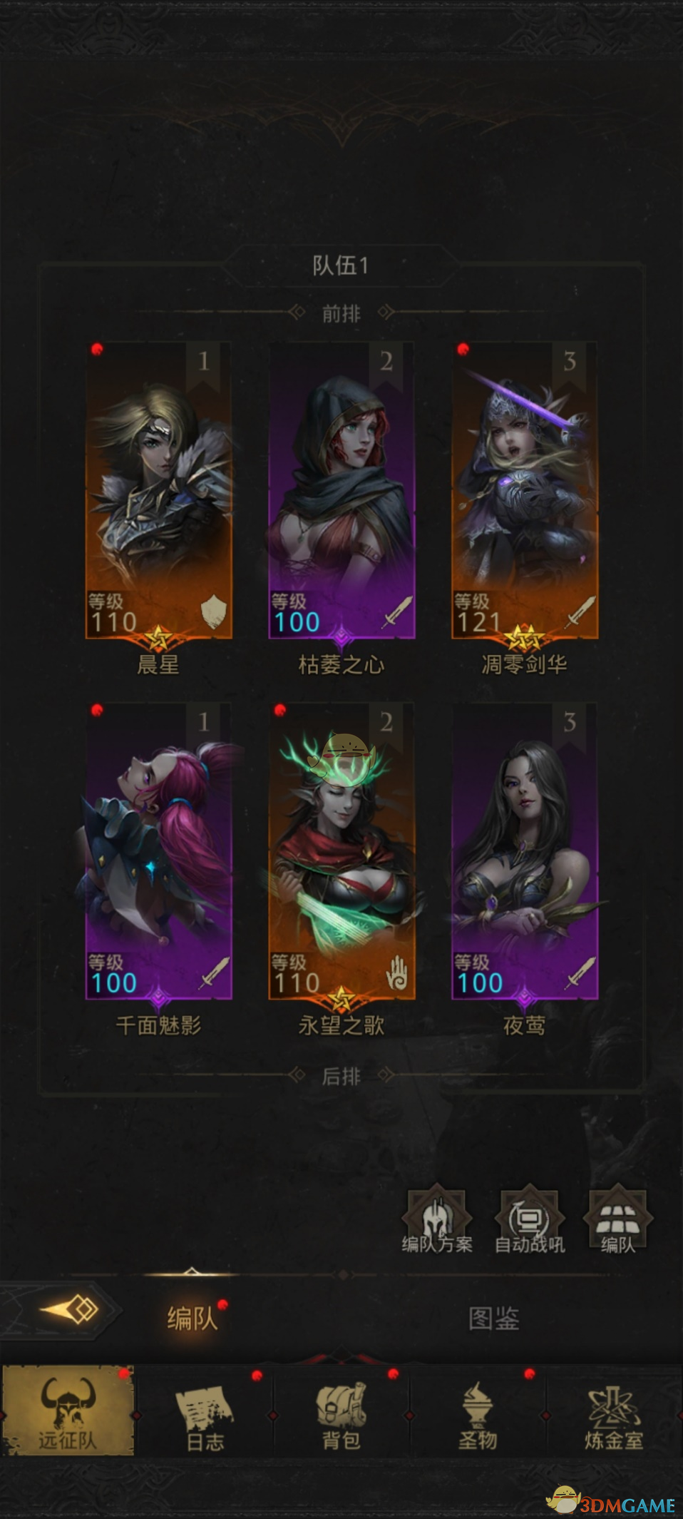 2主c:夜莺(破盾)凋零剑华(输出很高,晨星没血了开战吼扛,可以省下奶妈的战吼)免疫恐惧的项链给剑华用
