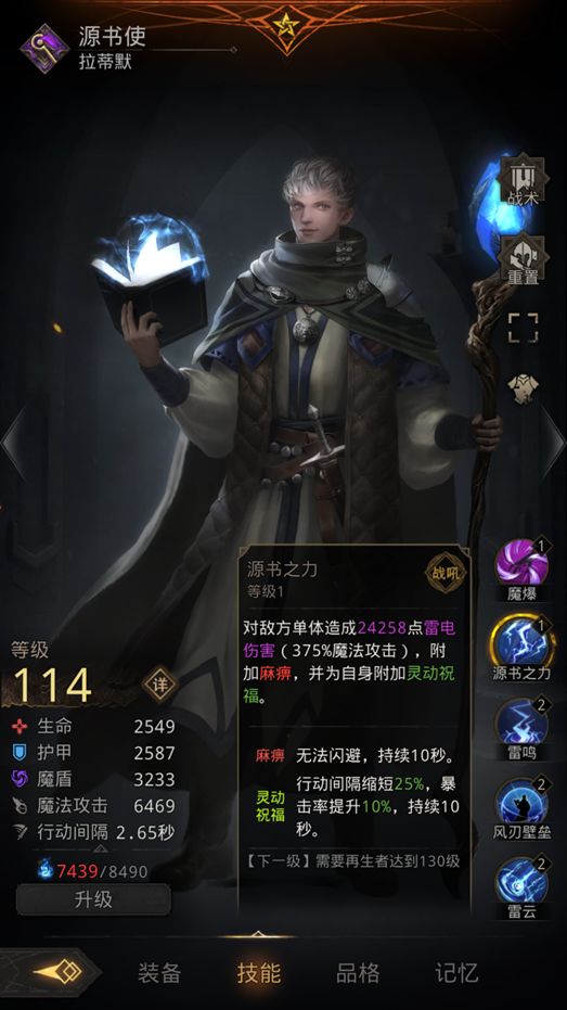所以,在前中期装备欠缺的情况下法系推荐第一核心C是雷法,战吼高额减CD+10%暴击率和必中配合装备词条提供的减CD,最好有一把20%造成90%魔法伤害的武器就可以在Boss战打出高额输出。