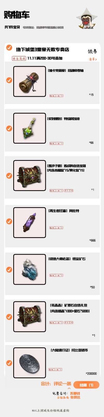 相信各位招魂师的购物车里